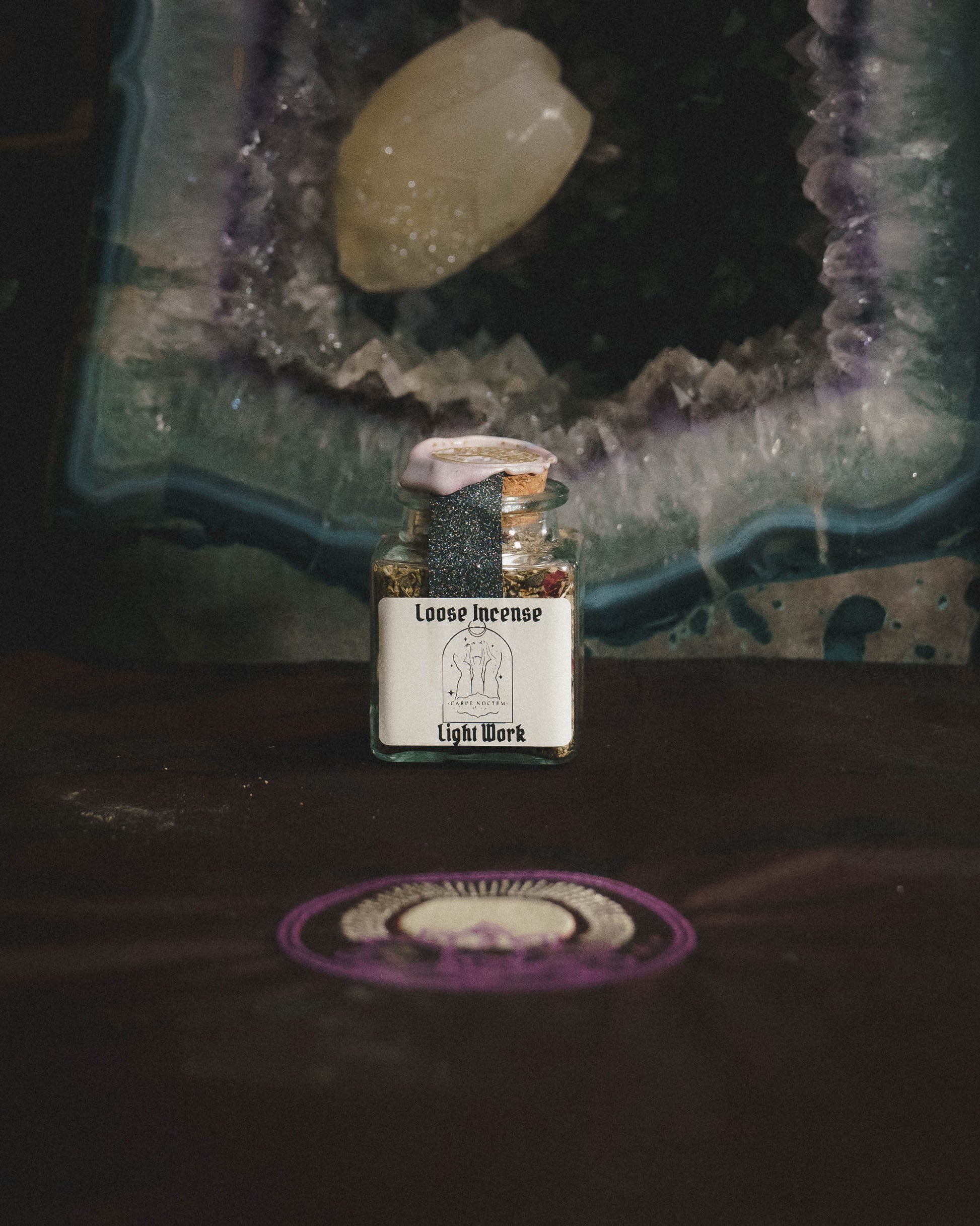 This loose incense blend is a mix of Sage, Rose, Palo Santo, Oregano & Jasmine oil.